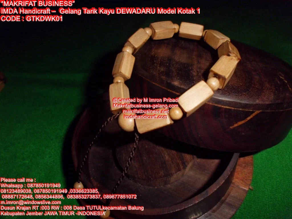 Gelang Tarik Kayu Kalimosodo Model Kotak 1 , Persembahan team MAKRIFAT BUSINESS Sentral Galeri Kerajinan Seni Acecories Souvenir Handicraft Manik Manik Asli Khas Sajian Produk Unggulan Desa TUTUL Balung Jember Jawa Timur, ini kami jual dengan harga :