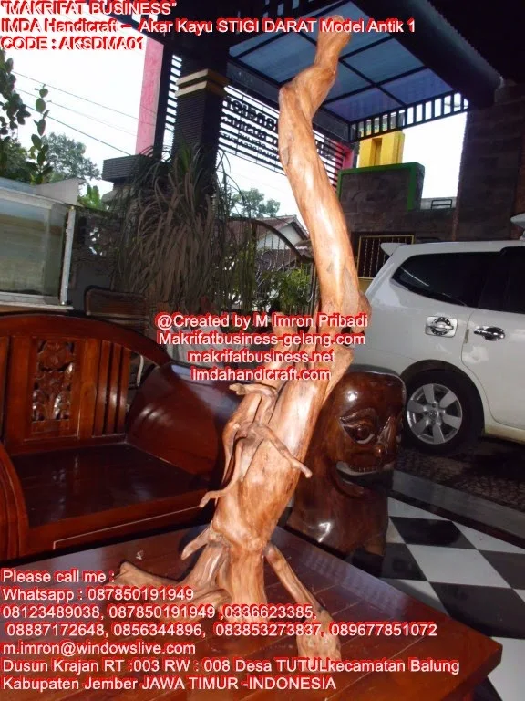 Akar Kayu STIGI DARAT Model Antik 1 , Persembahan team MAKRIFAT BUSINESS Sentral Galeri Kerajinan Seni Acecories Souvenir Handicraft Manik Manik Asli Khas Sajian Produk Unggulan Desa TUTUL Balung Jember Jawa Timur, ini kami jual dengan harga :