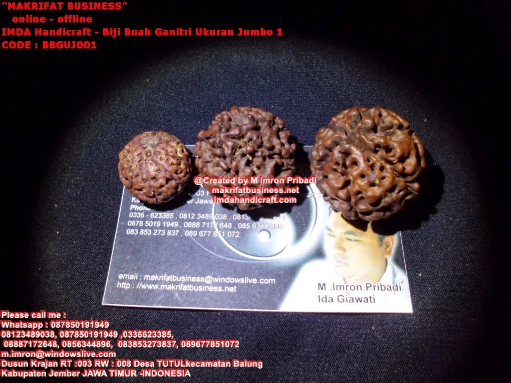 Buah Biji GANTRI RUDRAKSHA Ukuran Besar dan Jumbo , Persembahan team MAKRIFAT BUSINESS Sentral Galeri Kerajinan Seni Acecories Souvenir Handicraft Manik Manik Asli Khas Sajian Produk Unggulan Desa TUTUL Balung Jember Jawa Timur, ini kami jual dengan harga :