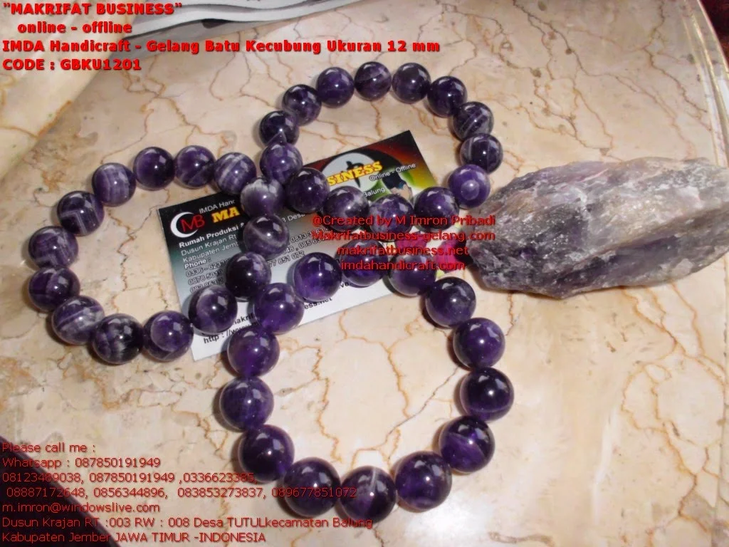 Gelang Batu Kecubung Ukuran 12 mm, Persembahan team MAKRIFAT BUSINESS Sentral Galeri Kerajinan Seni Acecories Souvenir Handicraft Manik Manik Asli Khas Sajian Produk Unggulan Desa TUTUL Balung Jember Jawa Timur, ini kami jual dengan harga :