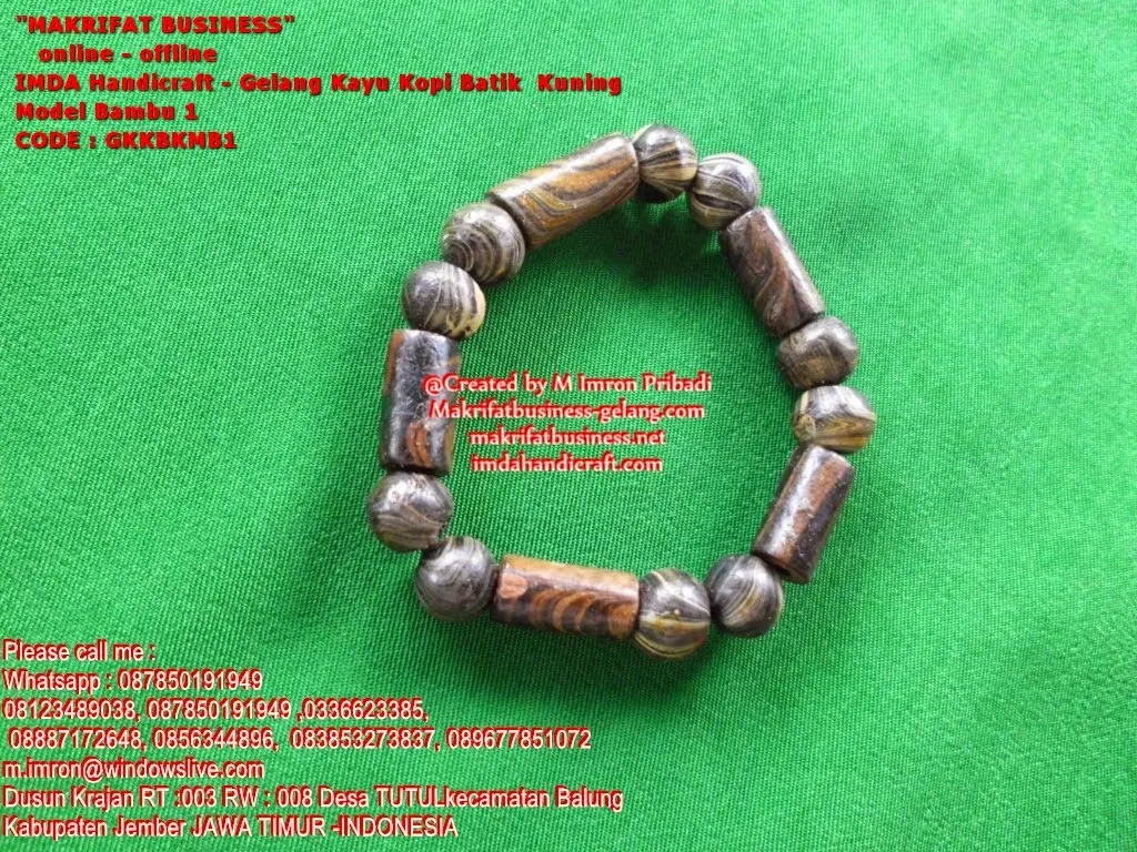Jenis Produk Kerajinan Handicraft Gelang Kayu Kopi Batik Kuning Model Bambu 1, Persembahan team MAKRIFAT BUSINESS Sentral Galeri Kerajinan Seni Acecories Souvenir Handicraft Manik Manik Asli Khas Sajian Produk Unggulan Desa TUTUL Balung Jember Jawa Timur, ini kami jual dengan harga :
