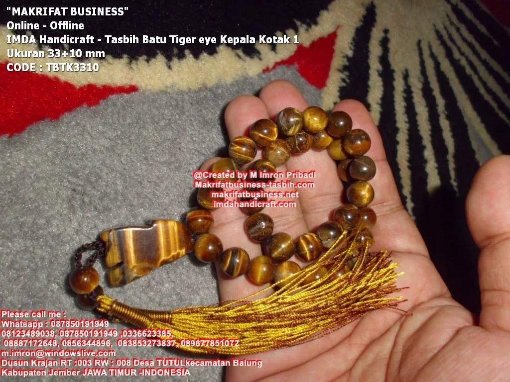 Jenis Produk Kerajinan Handicraft Tasbih Batu Tiger eye Biduri Sepah Kepala Kotak 1 Ukuran 33+10 mm, Persembahan team MAKRIFAT BUSINESS Sentral Galeri Kerajinan Seni Acecories Souvenir Handicraft Manik Manik Asli Khas Sajian Produk Unggulan Desa TUTUL Balung Jember Jawa Timur, ini kami jual dengan harga :