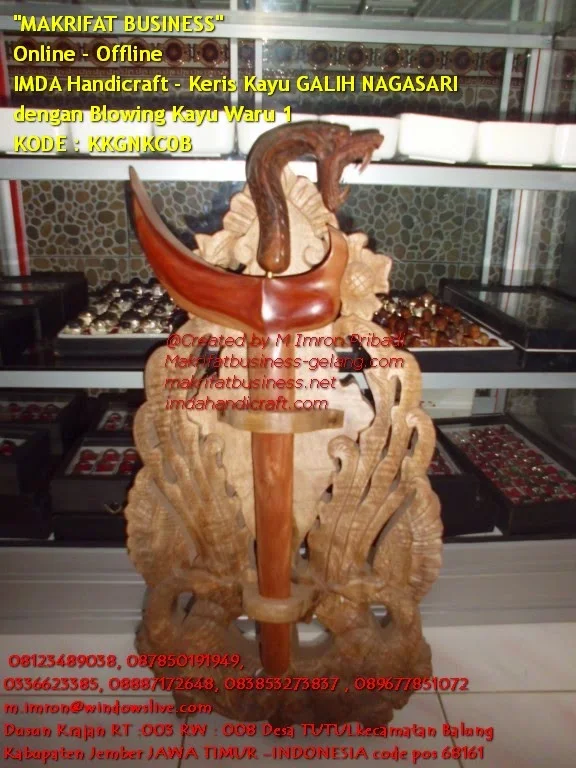 Jenis Produk Kerajinan Handicraft Keris Kayu GALIH NAGASARI dengan Blowing Kayu Waru 1, Persembahan team MAKRIFAT BUSINESS Sentral Galeri Kerajinan Seni Acecories Souvenir Handicraft Manik Manik Asli Khas Sajian Produk Unggulan Desa TUTUL Balung Jember Jawa Timur, ini kami jual dengan harga :