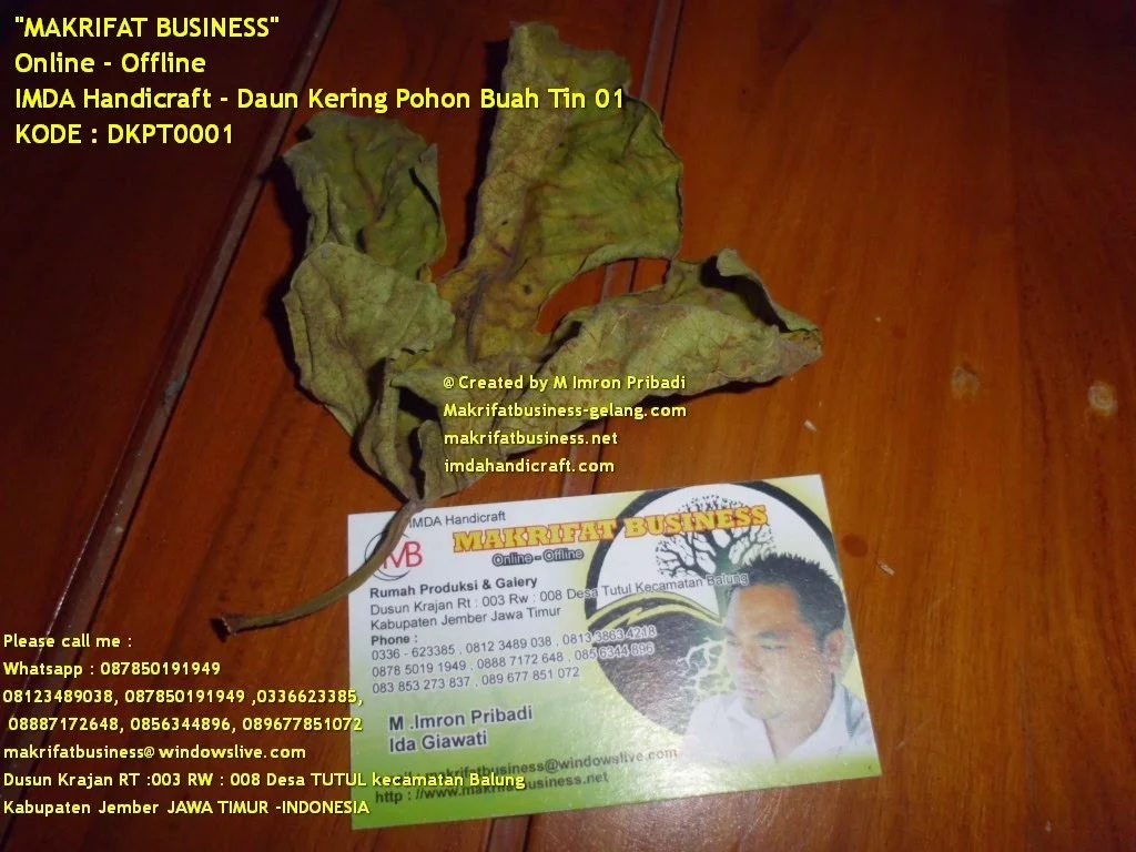 Jenis Produk Kerajinan Handicraft DAUN Kering Pohon BUAH TIN 01, Persembahan team MAKRIFAT BUSINESS Sentral Galeri Kerajinan Seni Acecories Souvenir Handicraft Manik Manik Asli Khas Sajian Produk Unggulan Desa TUTUL Balung Jember Jawa Timur, ini kami jual dengan harga :