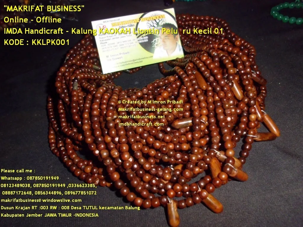 WELCOME selamat datang di HANDICRAFT KERAJIAN JEMBER, Salam "makrifat business" untuk kita semua, Kali ini kami sajikan produk dari IMDA Handicraft yang memproduksi Tasbih, Kalung, Cincin, Keris, Tongkat, Acecories, Pipa Rokok, Sabuk, Peralatan Dapur Kayu Aren dan Sonokeling, SeniUkir, Antik unik, Kerajinan Manik Manik, Kerajinan Kaokah, Kerajinan Kayu Agarwood Cendana, Kerajinan Kayu Sandalwood Cendana, Kerajinan Tulang dan berbagai macam segala kerajinan tangan lainnya. kerajinan khas desa TUTUL sebuah desa produktif percontohan nasional. Seluruh produk produk ini dipasarkan oleh team makrifat business online offline.