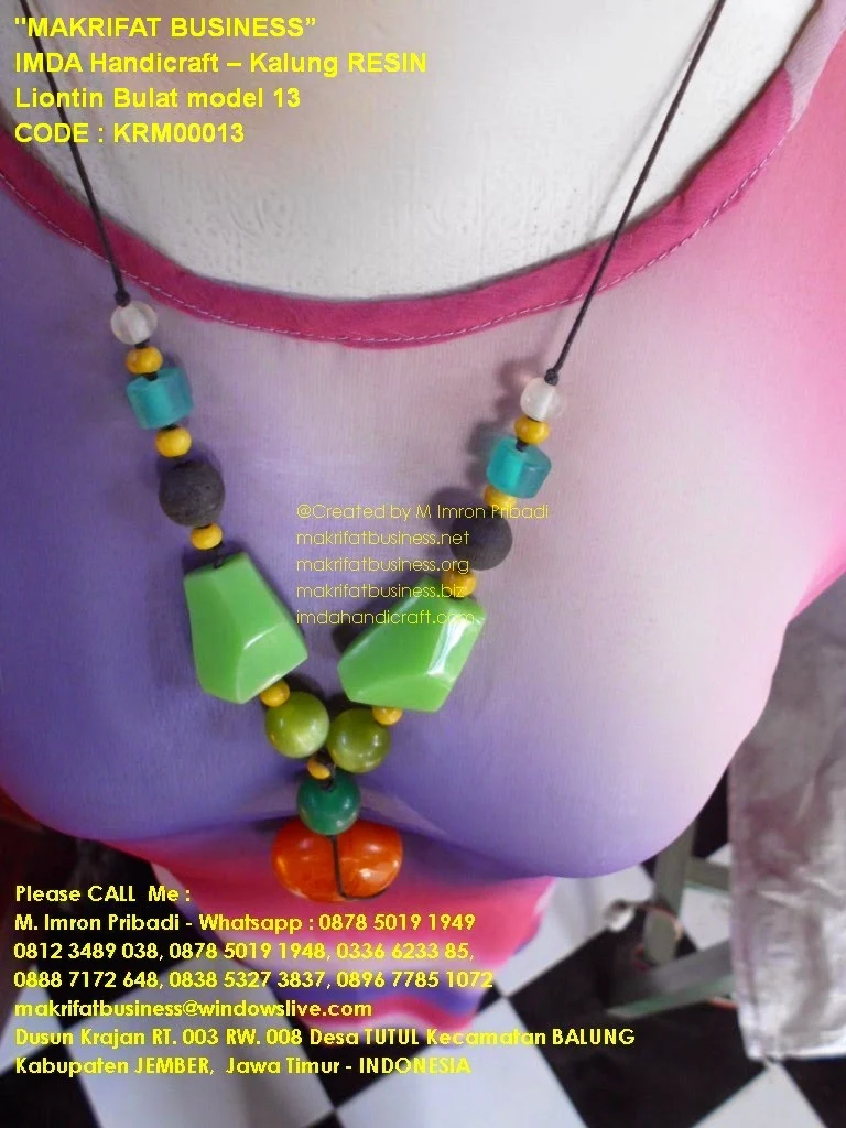 Kalung RESIN Liontin bulat model 13 , Persembahan team MAKRIFAT BUSINESS Sentral Galeri Kerajinan Seni Acecories Souvenir Handicraft Manik Manik Asli Khas Sajian Produk Unggulan Desa TUTUL Balung Jember Jawa Timur, ini kami jual dengan harga :