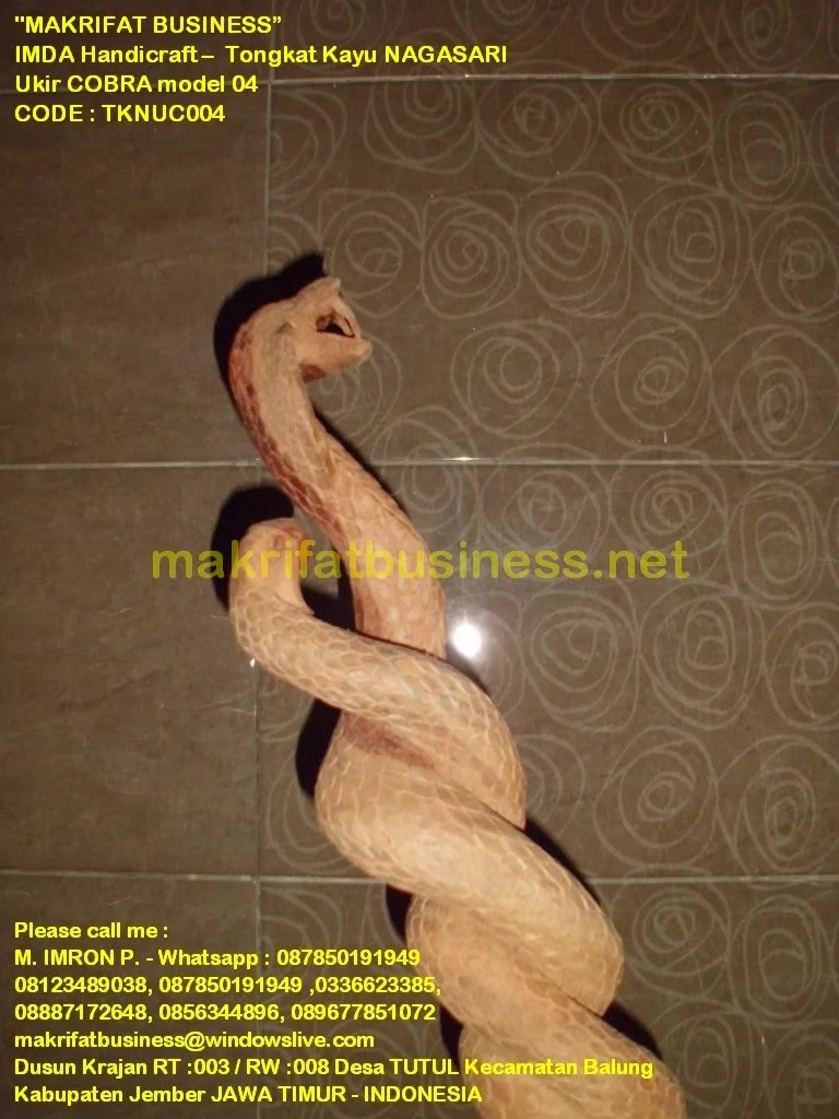 Tongkat Kayu NAGASARI Ukir COBRA model 04 , Persembahan team MAKRIFAT BUSINESS Sentral Galeri Kerajinan Seni Acecories Souvenir Handicraft Manik Manik Asli Khas Sajian Produk Unggulan Desa TUTUL Balung Jember Jawa Timur, ini kami jual dengan harga :