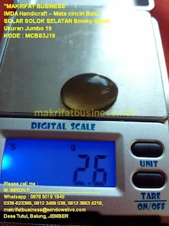 Jenis Produk Kerajinan Handicraft Mata cincin batu SOLAR SOLOK SELATAN Smoky Quart Ukuran Jumbo 19 , Persembahan team MAKRIFAT BUSINESS Sentral Galeri Kerajinan Seni Acecories Souvenir Handicraft Manik Manik Asli Khas Sajian Produk Unggulan Desa TUTUL Balung Jember Jawa Timur, ini kami jual dengan harga :