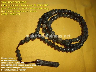 Jenis Produk Kerajinan Handicraft Tasbih batu BLACK JADE green Serphentine Aceh model pucuk bung 99 biji diameter 7, Persembahan team MAKRIFAT BUSINESS Sentral Galeri Kerajinan Seni Acecories Souvenir Handicraft Manik Manik Asli Khas Sajian Produk Unggulan Desa TUTUL Balung Jember Jawa Timur, ini kami jual dengan harga :